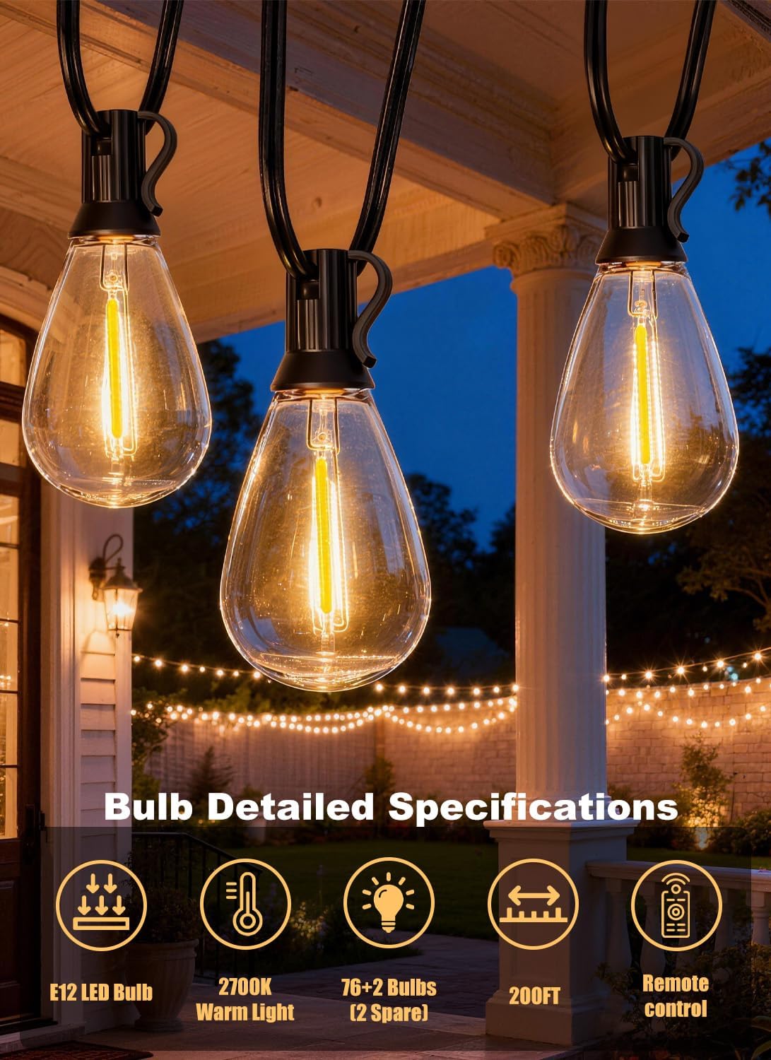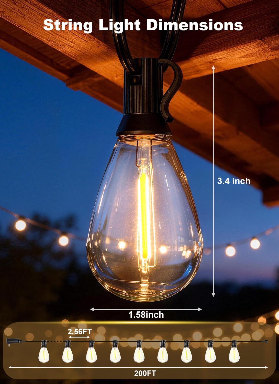 | Included Components | 200ft outdoor string lights |