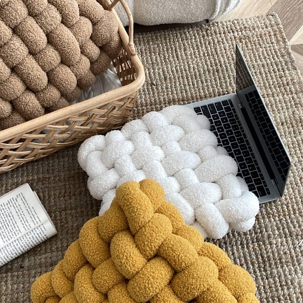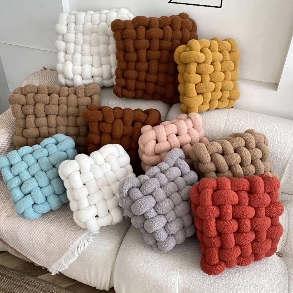 Nordic ins pillow square woven chair cushion cushion sofa back plush pillow decorative bay window cushionSpecificationMaterial: Lamb velvetKnot Pillow Size:33x30x12cm/13x11.8x4.7inch, 40x40x12cm/15.7x15.7x4.7inchWeight: about 900g/1500g(There may be a difference of about 100g, please understand)Color: Pink, Ginger Yellow, Grapefruit Red, Caramel, Khaki, Creamy, Light Blue, Light GreyPackage Contains1x Square Knot PillowWashing Instructions: Hand wash only (do not machine wash or use bleach). The inner core cannot be disassembled and cleaned. Keep it as it is after each wash.Note:1. The real color of the item may be slightly different caused by many factors such as brightness of your monitor and light brightness.2. Please allow 1-2cm deviation due to the sewing or hand-cutting.3.Because Our Round Pillow is packed in a vacuum bag. When you receive them, take them out and pat them a few times to fluff them up.Pillows may take up to 24 hours to recover, please be patient. 4.If you have any quality problems with the products you received, you can contact us at any time, and we will reply you within 24hours.